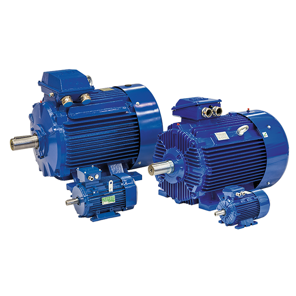 Three-phase electric motors of efficiency class IE4, IE3, IE2 and IE1.