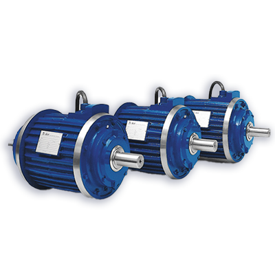Three-phase two-speed motors in all commonly used number of poles. They are available both in constant torque design and for fan operation.